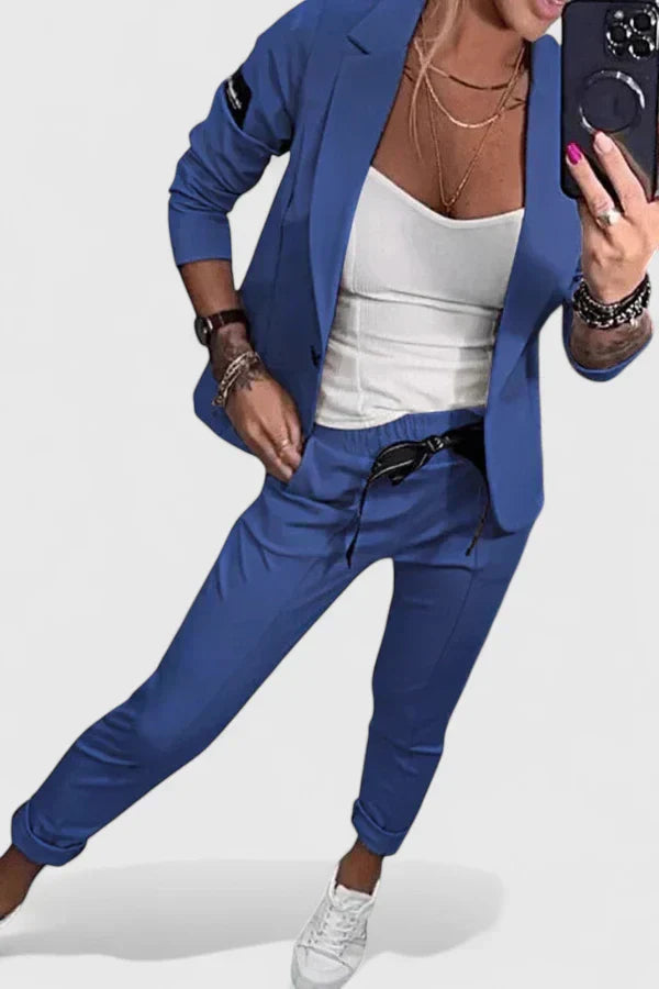 The Liza Tailored Two-Piece Set blends sophistication with everyday comfort. Featuring a sleek blazer and matching slim-fit pants, this set is perfect for workdays, evenings out, or smart-casual occasions. Designed for versatility, it pairs easily with your favorite tops and accessories for a polished yet relaxed look.